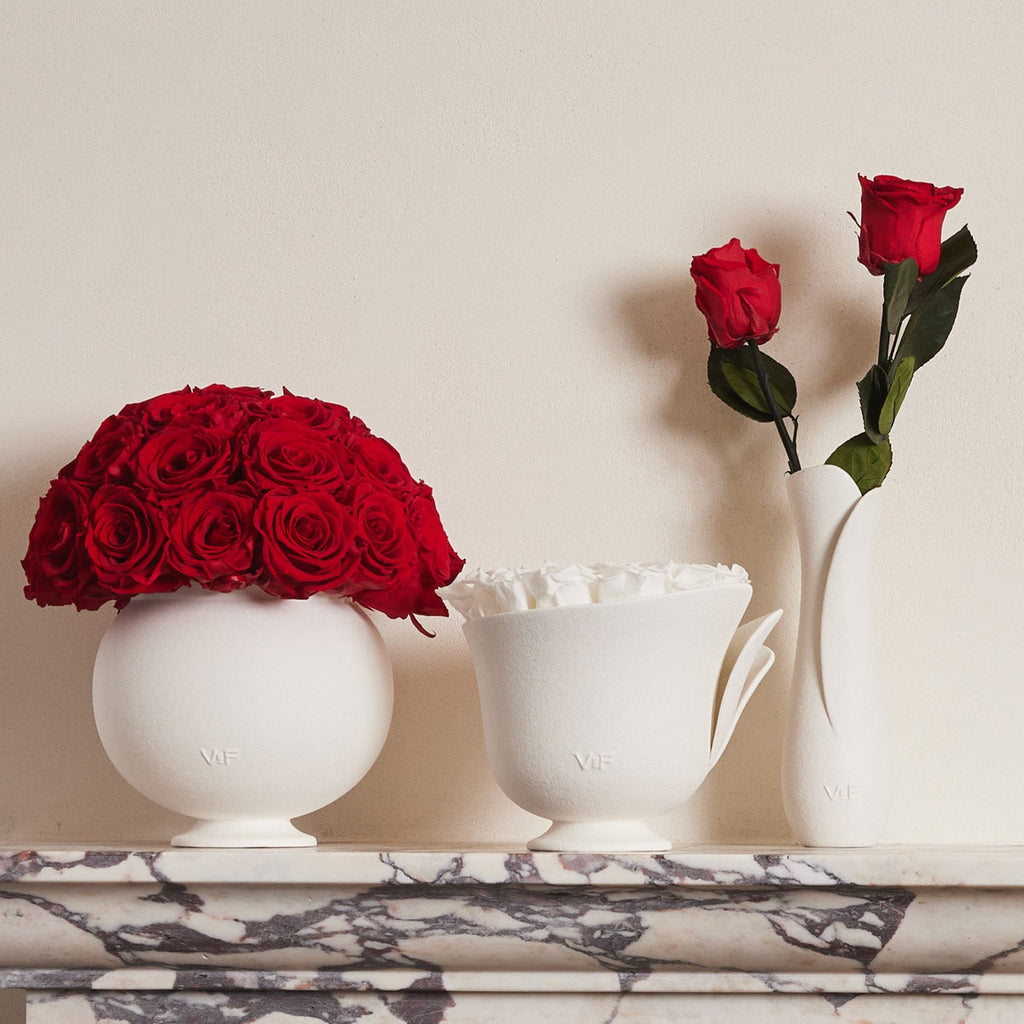 Thank you so much for your kind words! We're delighted to hear that everything—from the packaging to the roses and vase—met your expectations.