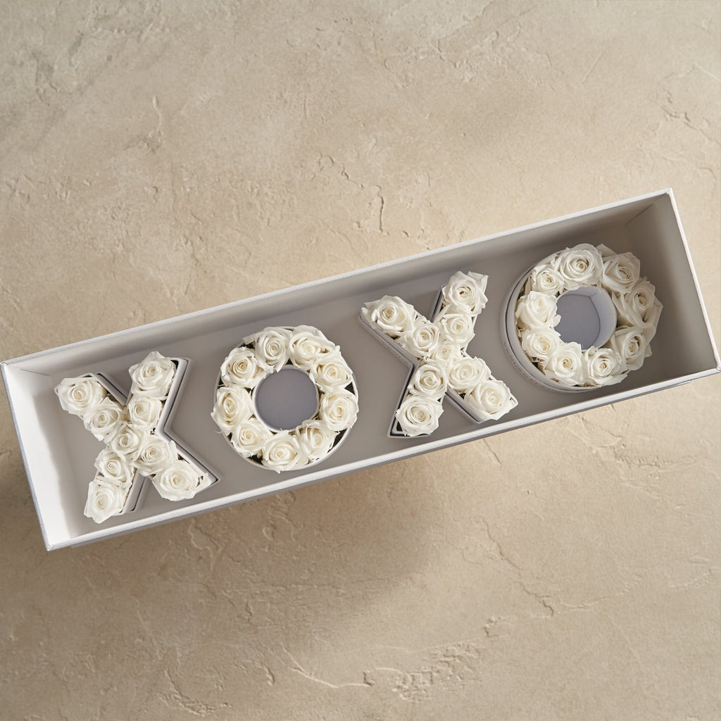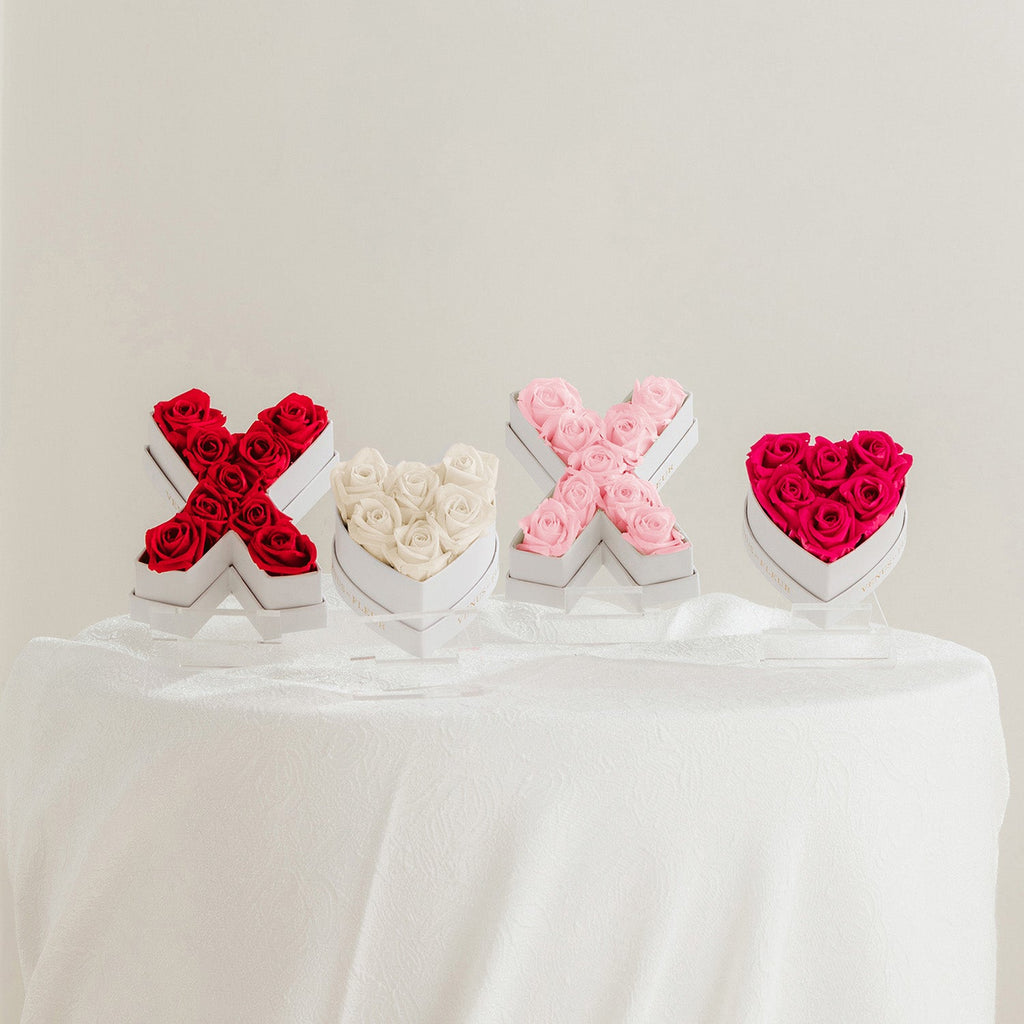 Send a statement with the X♡X♡ Le Mini Gift Set. Over two dozen mini spray roses create the X’s and heart-shaped O’s that spell out your love. This charming floral arrangement steals the show and the heart of special someone.