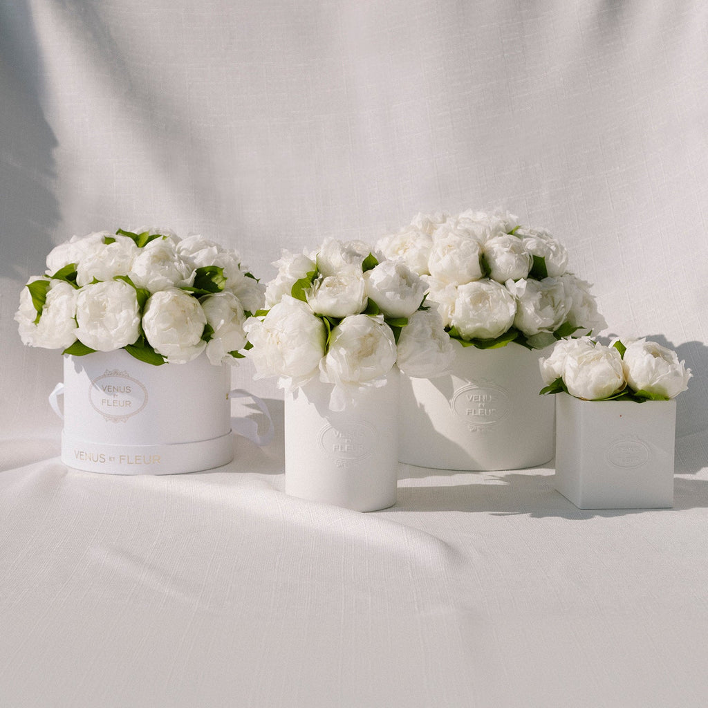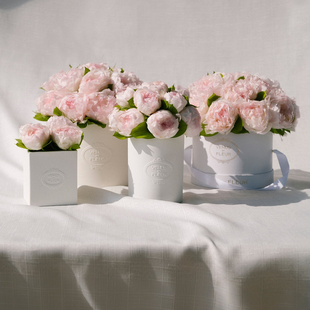 This arrangement features 4 eternity® peonies, hand-selected and hand-picked by the botanical experts at our partner farms in Japan.